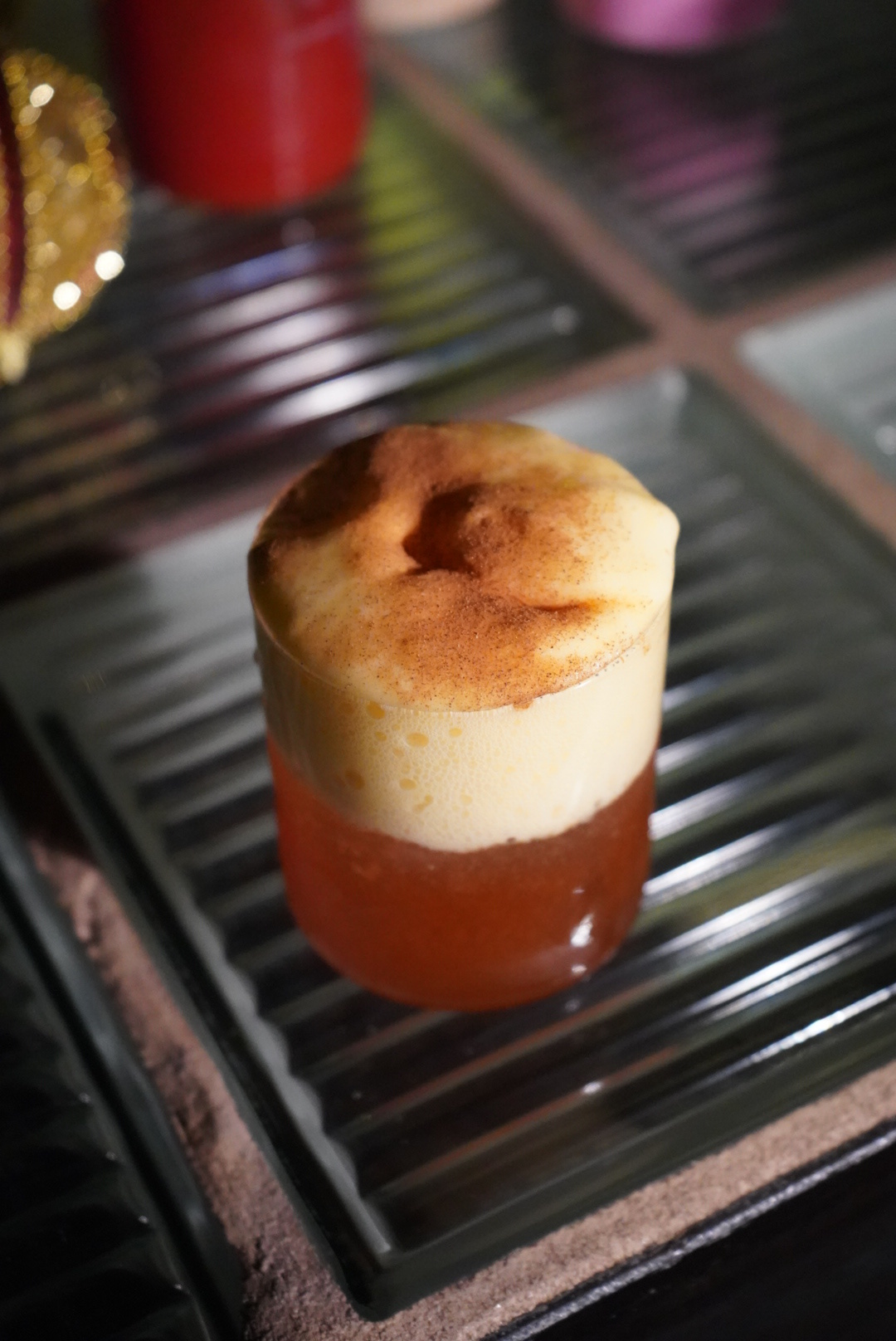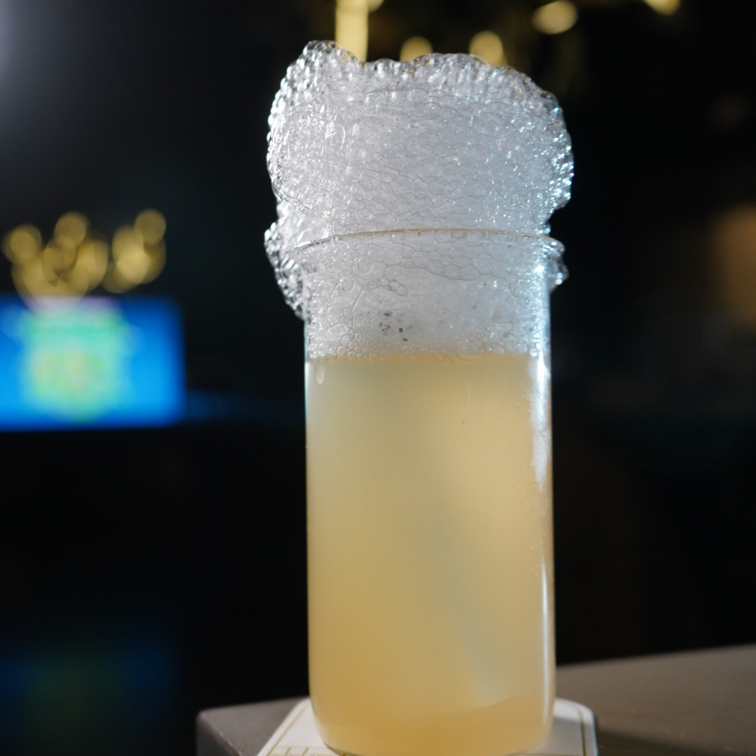 Виски, сироп имбирного пряника, сок лайма, пена из эгг-нога