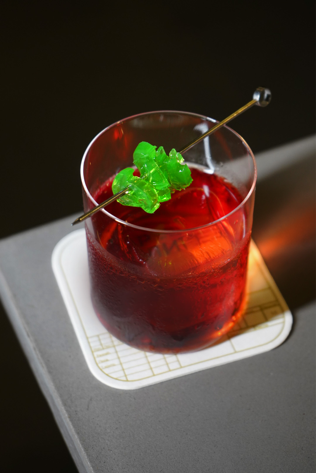 Крафтовый женевер, кампари, красный вермут, молочный улун