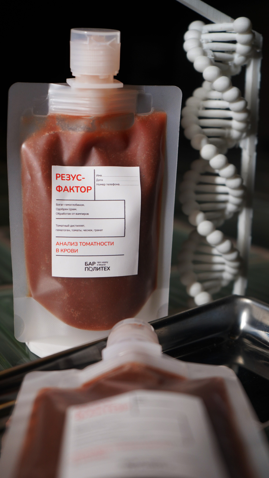 Водка, томатный сок, специи, тинктура бородинского хлеба, кориандра и розмарина