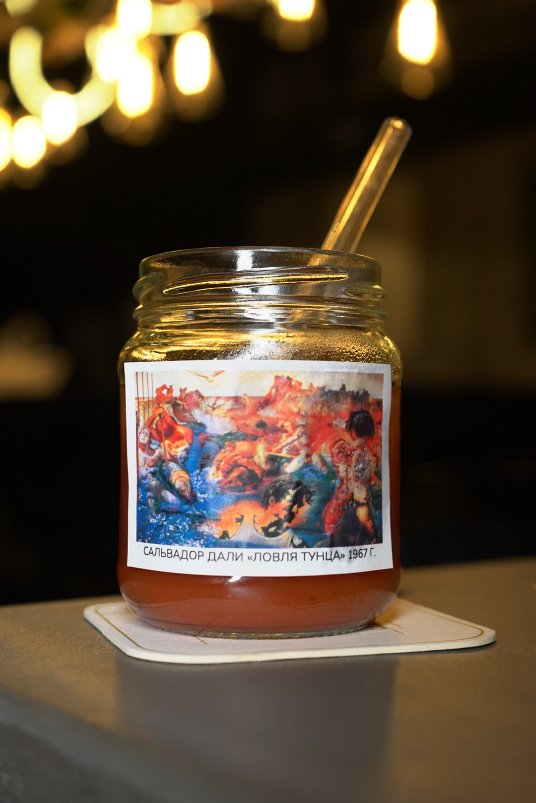 Апельсиновый дистиллят, томатный сок, тунец, чили