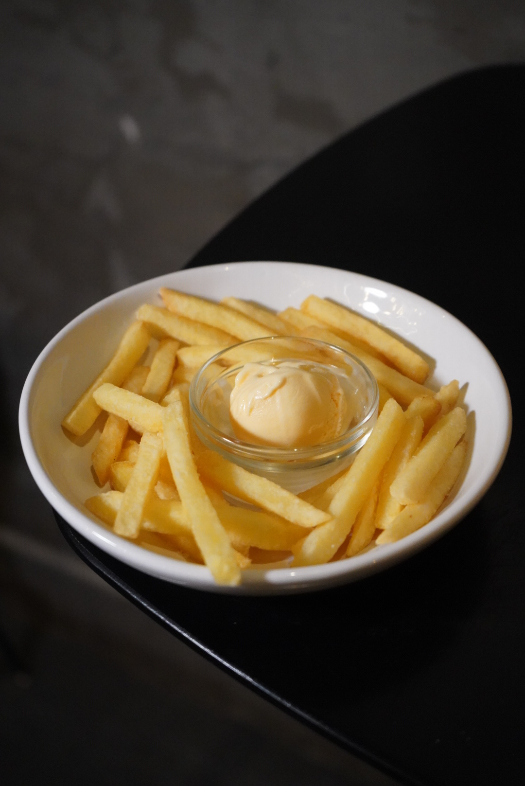 Картофель\Батат фри с сырным мороженым.