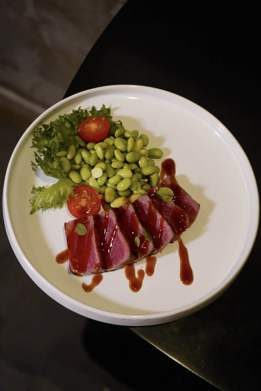 Подаётся с бобами эдамаме.